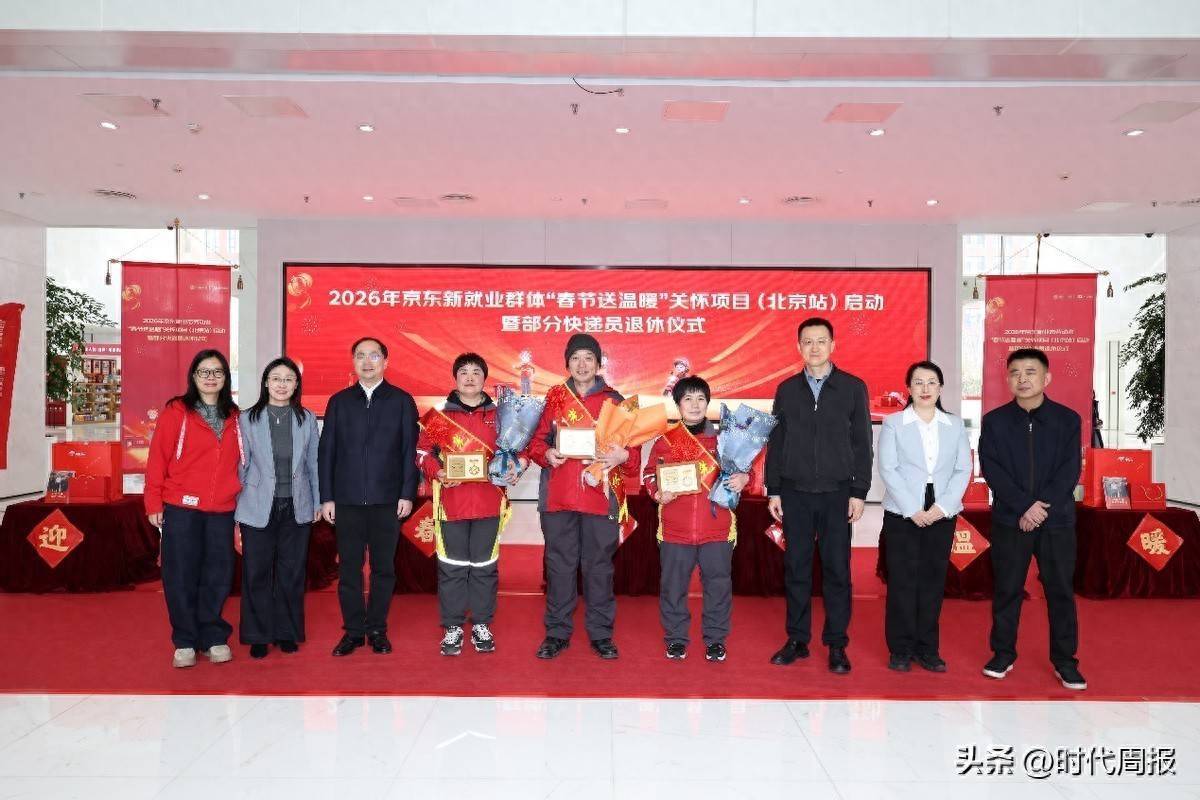 2月10日,2026年京东新办事景观办事者“春节送良善”见谅技俩(北京站)启动暨部分快递员退休典礼在北京举行。中华宇宙总工会、宇宙妇联、中国快递协会以及北京市委社会责任部、市委互联网企业工委、市总工会、市妇联、市邮政贬责局、经开区管委会等10部门现场干涉,并为行将退休的快递员们颁发文凭。