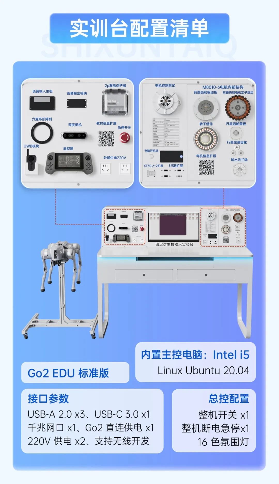 据悉,该决策建树法度化实训台、多模态传感套件、 ROS2 / Unitree SDK / 费力调试环境、配套实训课程包、运控与算法案例库等。而且提供基础爱戴、领会末端、自主导航、二次建筑均分级课程。